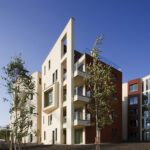 After the joint work on the concept, an architect of its own was assigned to each building, so each house within the block represents an individual character. Adjusted to the organic terrain conditions, two point houses and four houses with side corridors were designed. The buildings with complex masses are adjusted outwards, towards the site boundaries, surrounding a park adjusted to the existing terrain form – a trench. The green area formed in the interior of the block is enriched with spectacular space elements as a result of terrain shaping. In the planning process, the architects attempted to resolve the usual monotony of residential parks by the individual shaping of the buildings.