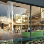 A humánumot középpontba emelő építészeti koncepció végigkíséri az épületegyüttest az előcsarnoktól a nővérállomásokon át a betegszobákig. Az épületek tagolása, a zöldfelületek kialakítása, az ápolási terek, a betegszobák berendezése, az anyaghasználat, a fények, a színek vagy a helyiségekben alkalmazott textilek mind a barátságos, nyugalmat árasztó, betegközpontú környezet megteremtését szolgálják. A betegek kisétálhatnak a tetőkertekre, ráláthatnak a zöldfelületekre, míg az ablaktalan helyiségekben – például a diagnosztikai terekben – a közérzet javítását olyan speciális megoldások is segíthetik majd, mint a mennyezeten és a falakon elhelyezett, természetes fényt, vagy az égboltot imitáló világítópanelek. Emellett kifejezett cél volt olyan közösségi terek megalkotása, ahol a csendes elvonulástól, a nyugodt orvos-beteg párbeszéden át akár közös filmnézésre, koncertek vagy tudományos előadások meghallgatására is van lehetősége a gyógyulóknak.