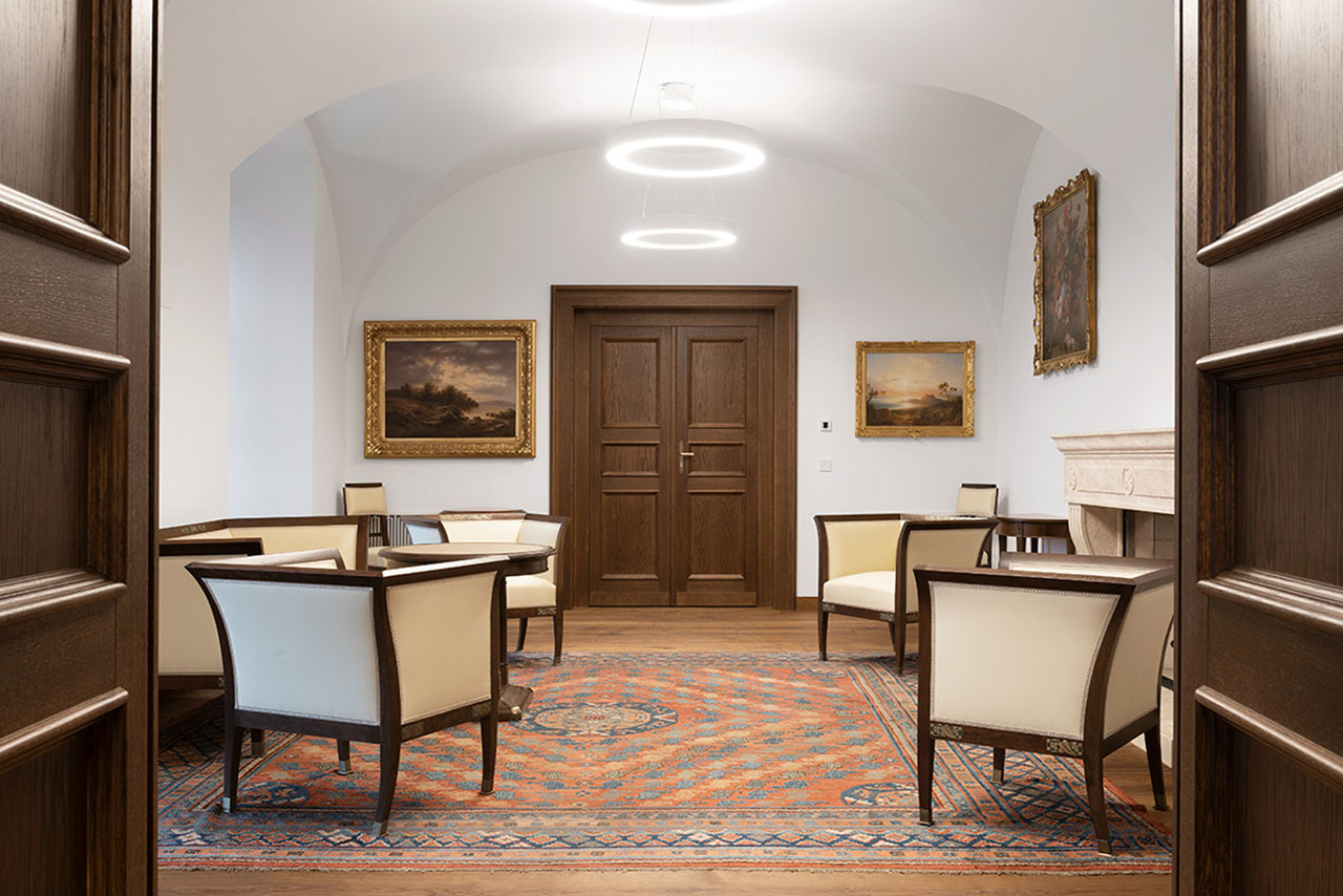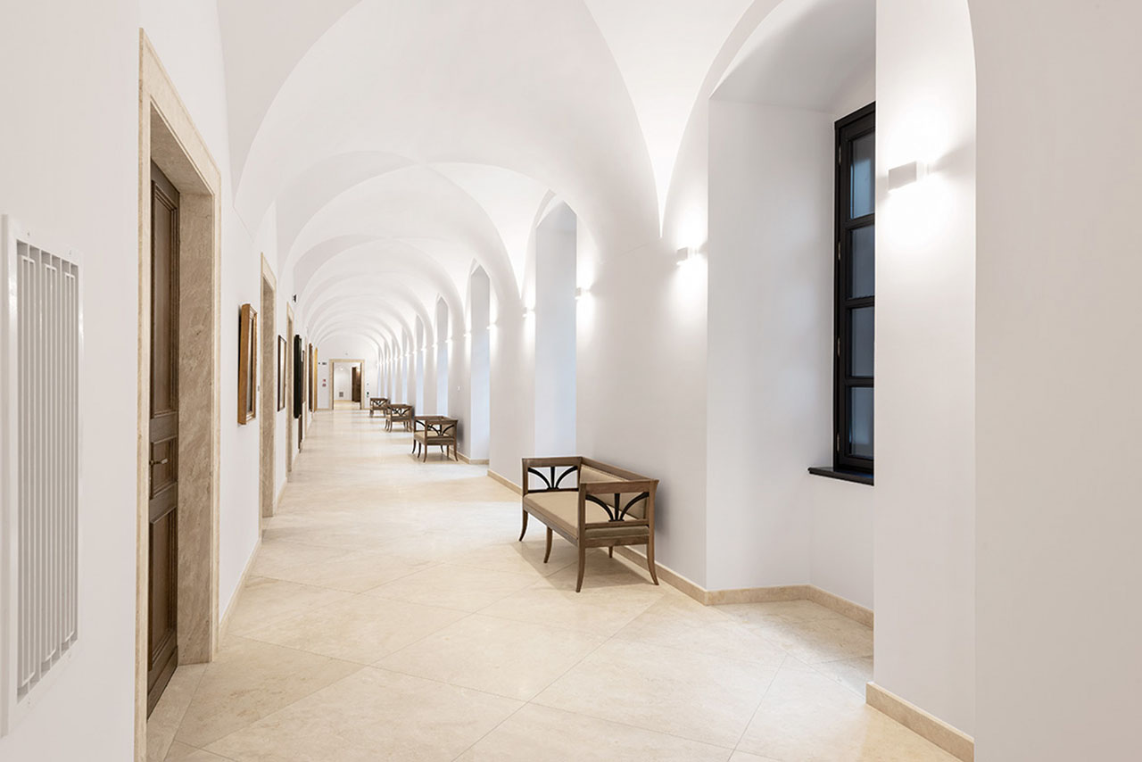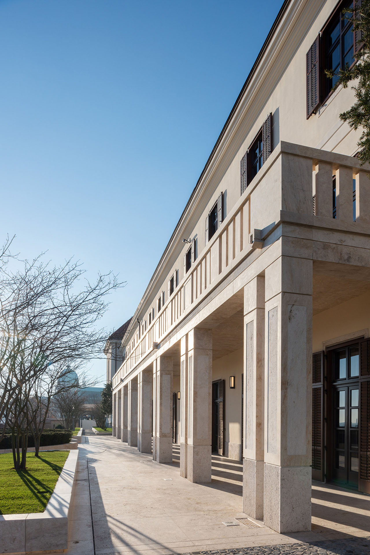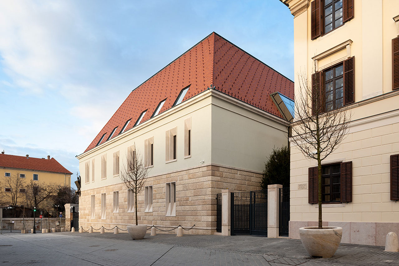 A meglévő épület a kolostorok klasszikus elrendezését követi, belső udvart keretező szárnyakkal és kerengő folyosókkal. Az épület kötött alaprajzi kialakítása és az eredeti kolostor funkciójából adódó adottságok komoly feladat elé állították a tervezőket. Egyszerre kellett megfelelni a műemléki elvárásoknak, a hivatal funkcionális igényeinek és ki kellett alakítani az állami protokoll megfelelő környezetét is. A műemléki szempontok maximális figyelembe vételével rejtve alakítottuk ki a gépészeti és az egyéb speciális technológiák rendszereit.