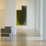 A Ludwig Múzeum a tömb legcsendesebb, Duna felőli részébe került, a telek geometriájából és saját funkciójából adódóan elkülönül az előadótermeket befogadó térsortól. A városi panoráma és a múzeum helyiségei folyamatos párbeszédben állnak, a lépcsőtér és a kiállítótéri pihenők üvegfalain át újra és újra feltárul Budapest panorámája.