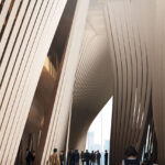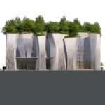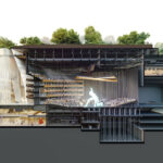 Az előadóművészeti központ homlokzata az utcaszinten több önálló, függőleges kő-szalagként indul. A kőszalagok biztosítják a külső és a belső tér közötti szabad átlátást, majd ezek a szálak felfelé haladva egyre jobban összezárnak, végül pedig egybeolvadva tartják a tetőkerteket.